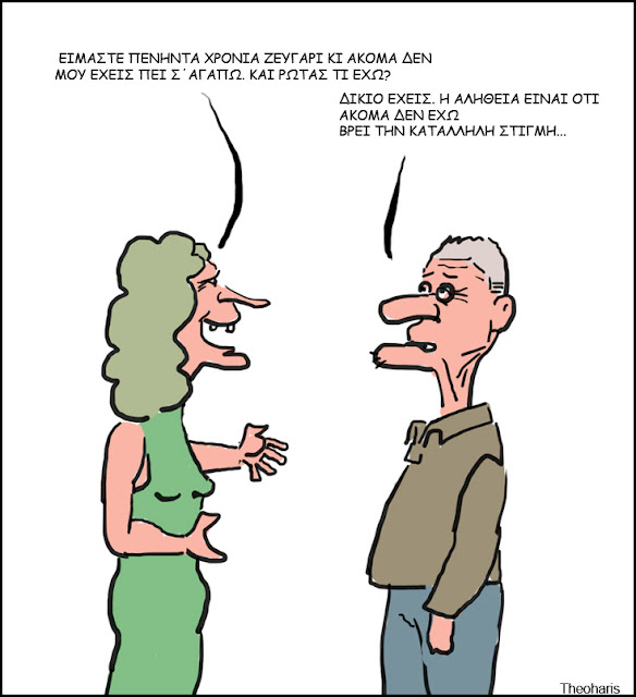 WOMAN: We've been married for fifty years, and you still haven't told me I love you. And you ask me what's going on?